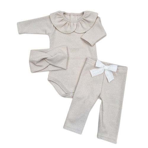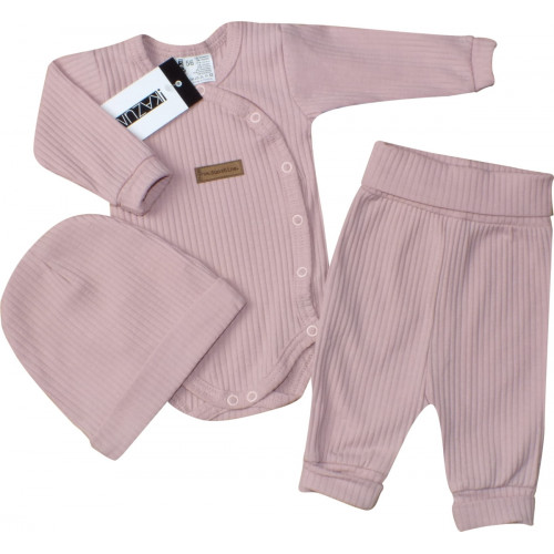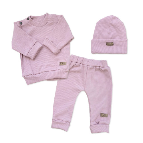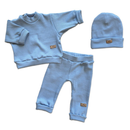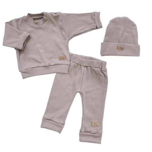 3-dielna dojčenská a detská súprava z rebrovaného úpletu.