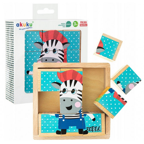 Dieťa sa učí tvary, farby a rôzne zvieratká. Drevený box uľahčuje stohovanie kociek, prenášanie a skladovanie.