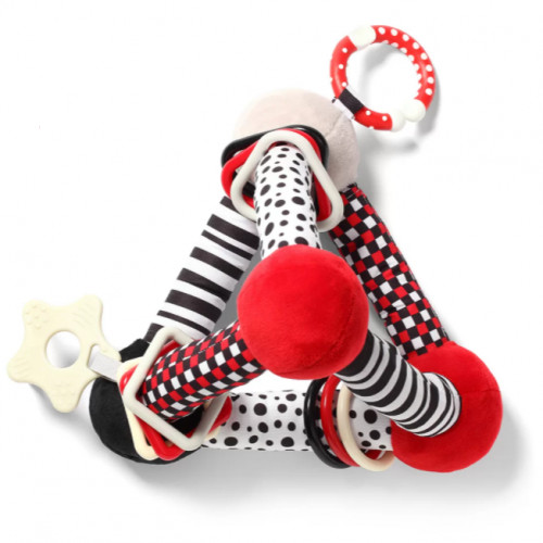 Intenzívne farby a zvuk rolničky zaujmú pozornosť dieťaťa a podporujú vývoj jeho zmyslov.