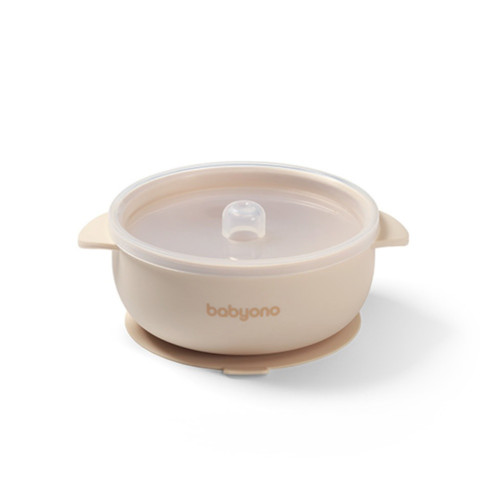 Silikónová detská miska s prísavkou a viečkom BabyOno – ideálna na zavádzanie príkrmov.