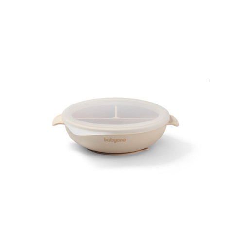 Delený tanier s prísavkou a viečkom BabyOno – ideálny na zavádzanie príkrmov a metódu BLW.