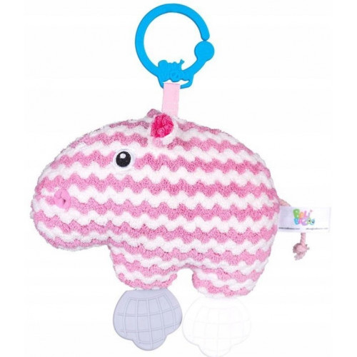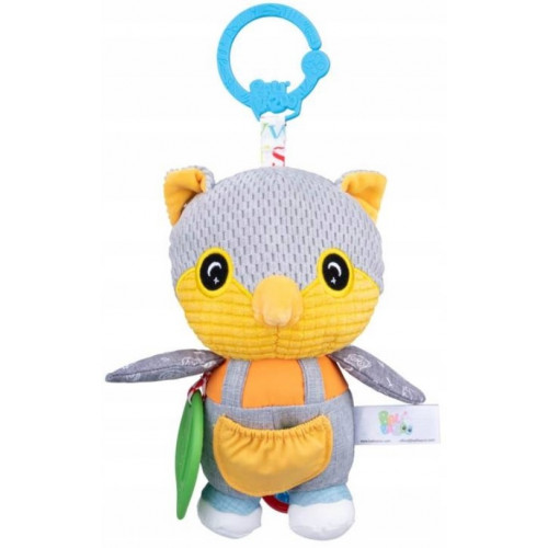 Hračku zdobia farebné hryzátka a praktická pracka, ktorá vám ju umožní pripevniť kamkoľvek.