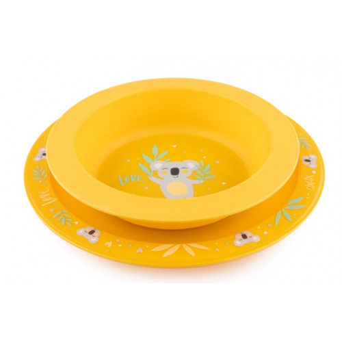 Set obsahuje misku (270 ml), tanierik, hrnček (170 ml) a príbor.