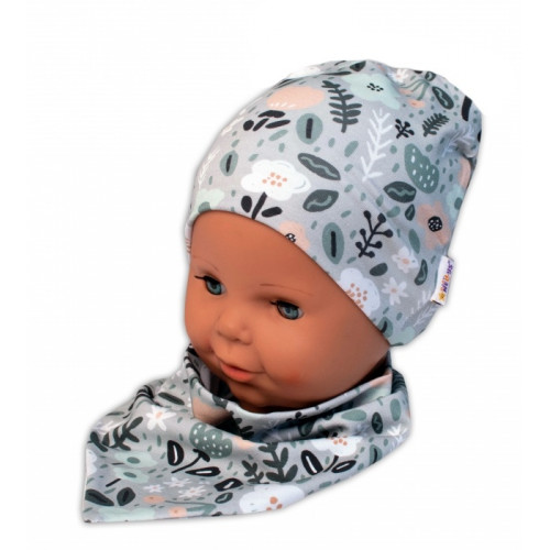 Baby Nellys Dvojvrstvová čiapka + šatka Palouček, mätová, 92/98
