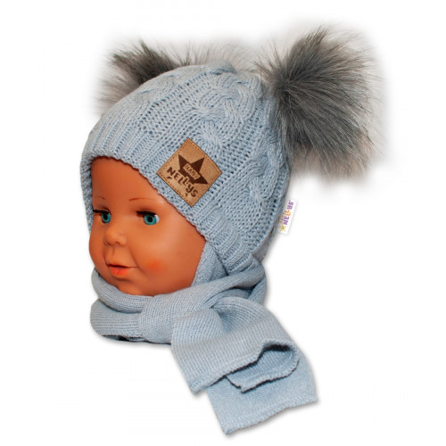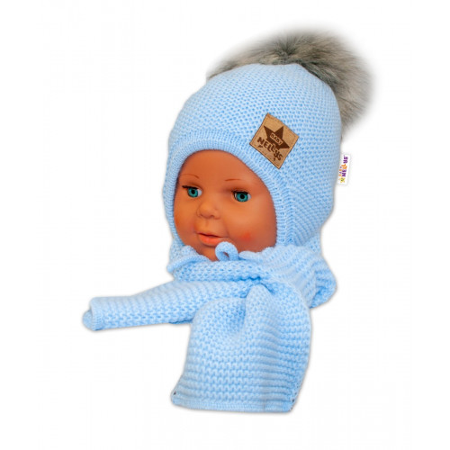 Zimná / jesenné čiapky s rozkošnou brmbolcom a šálom. Veľmi kvalitný a príjemný materiál. Balenie obsahuje: Čiapočku so zaväzovaním a šál. Materiál: 100% Akryl. Veľkosť čiapočky podľa výrobcu 3 - 6 me..