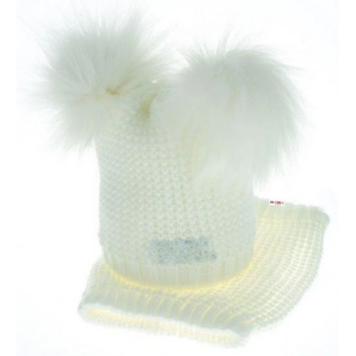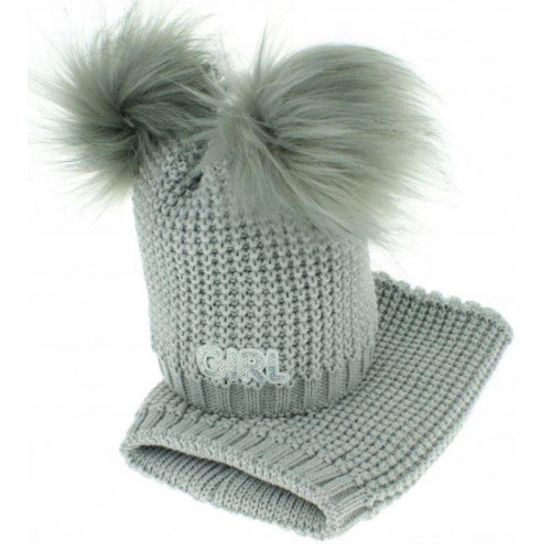 Zimná/jesenná čiapka s rozkošnou chlupáčkovou brmbulkou a šálom.