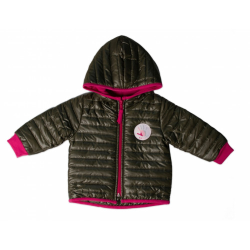 Prechodová prešívaná bunda s kapucňou - olivová/ružová