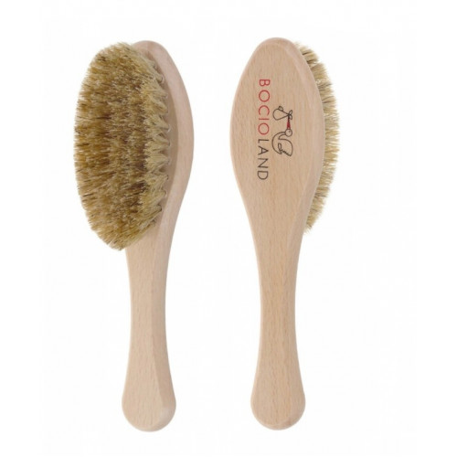 Drevená kefa na vlasy pre bábätká – konské štetiny, stredná tvrdosť.