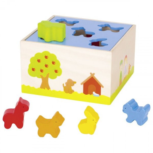 Deti vkladajú kocky do príslušných otvorov. Kocky sú vyrobené v tvare rôznych zvieratiek. Každá kocka je iná, líšia sa farbou i t..