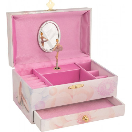 Šperkovnica v štýle hracej skrinky poteší malé dámy, ktoré túžia uložiť svoje šperky ako sa patrí.