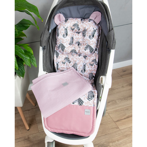 Nová obojstranná vložka do kočíka. Vďaka nepremokavej látke chráni pred nečistotami a možno ju ľahko utrieť vlhkou utierkou. Zadná časť vložky je bavlnená VAFEL, zatiaľ čo predná časť je vyrobená zo 1..
