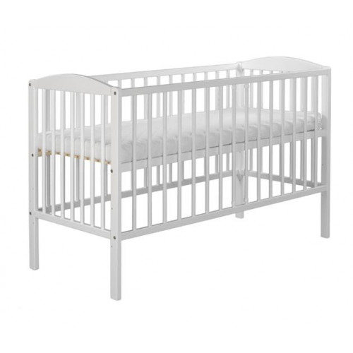 Detská postieľka Klupš "Radek II". Materiál: borovica. Farba: Biela. Vnútorný rozmer: 120x60cm. Dno postieľky je možné nastaviť do troch polôh podľa veku dieťaťa. Matrac nie je súčasťou. Bočné sprušle..