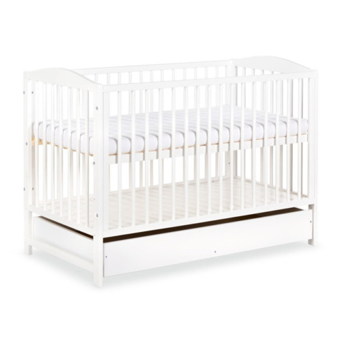 Detská postieľka so zásuvkou Inovatívny, moderný vzhľad. Veľmi príjemná univerzálna biela farba. Šuplík naspodku postieľky Rozmer 120x60cm Dno postieľky je možné nastaviť do troch polôh podľa veku die..