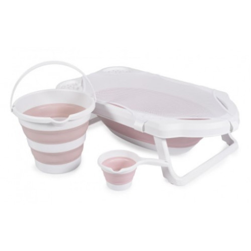 Sada obsahuje: skladaciu vaňu, hrnček, vedro na vodu a vaňovú sieťku.