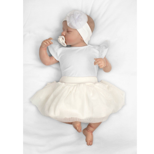 Vrchný volánik sukničky tvorí tyl, čo zaručuje jej elegantný vzhľad.
