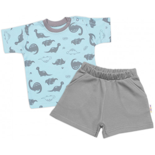 Tričko, krátky rukáv + kraťasky, 2D, Baby Nellys, Dino, bavlna, modrá/sivá