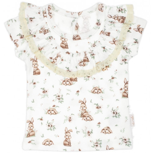 Tričko bavlna, krátky rukáv s volánikmi, Nicol, Bunny - krémové, veľ. 116
