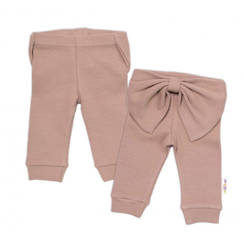 Baby Nellys Dojčenské rebrované legíny s mašľou - béžové, veľ. 68