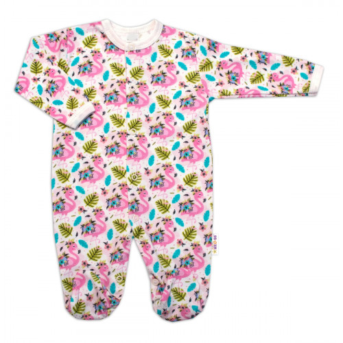 Baby Nellys Dojčenský overal zapínanie uprostred, Plameniak - biela/ružová